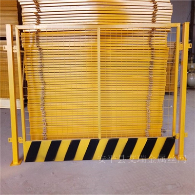 基坑臨邊護欄網(wǎng)片設計為黃色、立柱為紅色,均為噴繪,以達到紅白相間的警示效果。網(wǎng)片網(wǎng)格為50*50mm,鋼絲直徑為3.5mm。