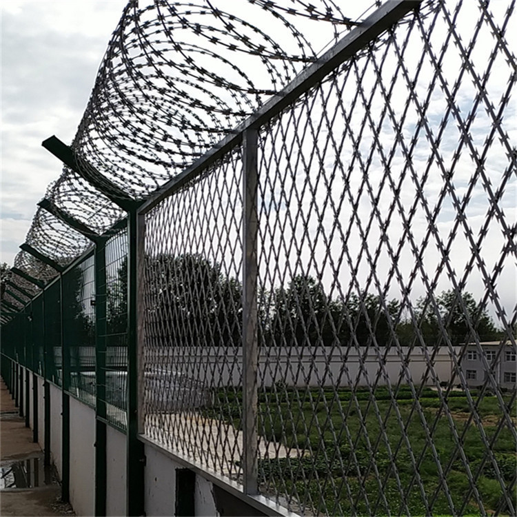 產(chǎn)品具有結(jié)構(gòu)新穎、堅(jiān)固緊密、網(wǎng)面平整、網(wǎng)孔均勻、刀鋒銳利、防攀爬、防腐蝕性強(qiáng)等特點(diǎn)。建設(shè)于的內(nèi)外墻地面及高墻之上,防攀爬護(hù)欄網(wǎng)內(nèi)側(cè)或頂部加裝蛇腹形刀刺網(wǎng),形成一道高不可攀、難以逾越的隔離障礙。配合高壓打擊電網(wǎng)、各種報(bào)警設(shè)備確保安全萬(wàn)無(wú)一失。