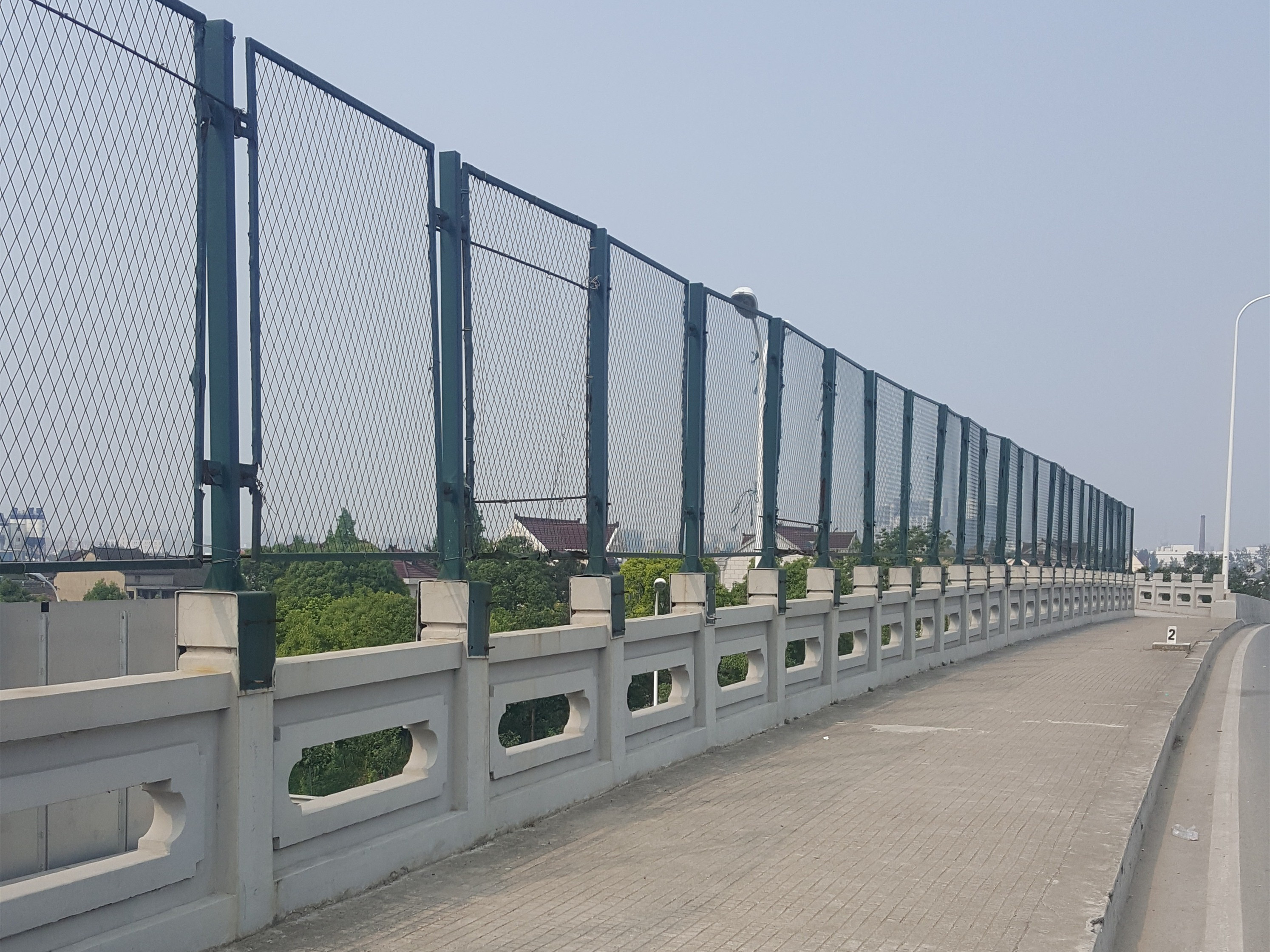 橋梁護欄網(wǎng)產(chǎn)品規(guī)格:選用3mm X 3mm鋼板網(wǎng)組成;網(wǎng)片形狀:菱形;網(wǎng)孔規(guī)格: 40x80mm;網(wǎng)片尺寸:規(guī)范規(guī)格1800x 2500mm。非規(guī)范高度2500mm ,長度限于3000mm。