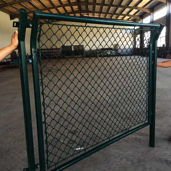 球場圍網(wǎng)由圍網(wǎng)框架+整體式拉網(wǎng)模式,結(jié)構(gòu)簡單耐用,整體效果好,性價比高。圍網(wǎng)的骨架通過直通、三通、四通等專用扣件將立柱和橫梁連成整體呈”口”或”日”字型,用高強(qiáng)度螺栓固定,圍網(wǎng)高度為4000mm,兩立柱間距三米左右;待圍網(wǎng)骨架搭建成型后,現(xiàn)場整體張拉圍網(wǎng),并用扁鐵固定在骨架的立柱及橫梁上。【配備1個1200mm*2000mm的單開式框架門】